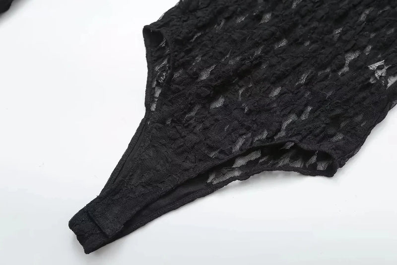 Enhance your wardrobe with the Elani Lace Body. This chic black lace bodysuit blends allure and elegance with intricate detailing. Made from premium lace, it’s perfect for intimate nights or layered looks.